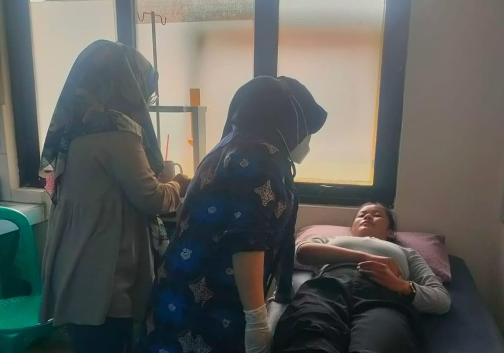 Saat ini korban sedang ditangani oleh petugas medis Puskesmas Karangtanjung, dr Tiara. (Putra).