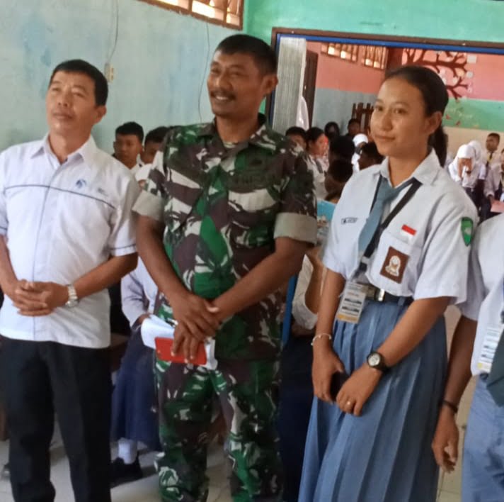 Lamandau, Kalteng – Babinsa Koramil 01-1017/Lmd, Sersan Dua (Serda) Sri Wiyono melaksanakan pendampingan masa pengenalan lingkungan sekolah dan memberikan materi wawasan kebangsaan bernegara kepada siswa baru di sekolah SMKN 1 Bulik, Kelurahan Nanga Bulik, Kecamatan Bulik, Kabupaten Lamandau, Provinsi Kalimantan Tengah, Rabu (12/7/2023) kemarin.