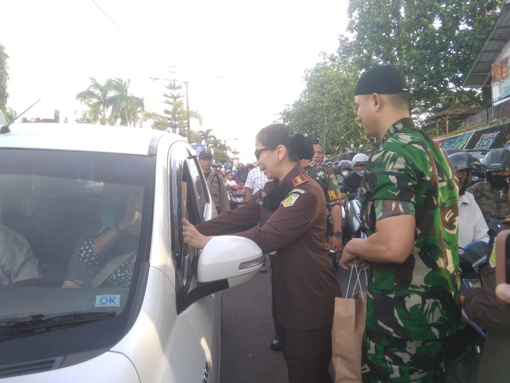 Pandeglang, Banten – Bagikan 500 paket takjil kepada pengendara di Jalan Ahmad Yani, Pandeglang, pada Rabu 5 April 2023. Kepala Kejaksaan Negeri (Kajari) Pandeglang Helena Octavianne bersama Komandan Kodim 0601 Pandeglang Letkol Inf Jani Setiadi langsung turun ke jalan.