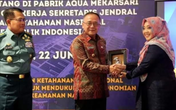 Dalam kesempatan tersebut juga dilaksanakan penyerahan Cindramata dari PT. Aqua Golden Misisipi kepada Tim Kerja Dewan Ketahanan Nasional dan Wabup Sukabumi