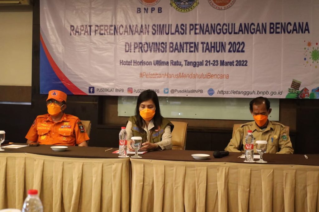 Serang – Biro Operasi Polda Banten menghadiri rapat perencanaan simulasi penanggulangan bencana yang dilaksanakan Badan Nasional Penanggulangan Bencana (BNPB) di Hotel Horison Ultima Ratu Serang pada Senin (21/3/2022).