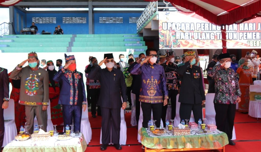 Kuala Kapuas – Bupati Barito Utara, H. Nadalsyah menghadiri Upacara Peringatan Hari Jadi Kota Kuala Kapuas ke-216 dan Hari Ulang Tahun Pemerintah Kabupaten Kapuas dengan tema “Bersatu Kita Bisa” yang dilaksanakan di Stadion Panunjung Tarung Kuala Kapuas.