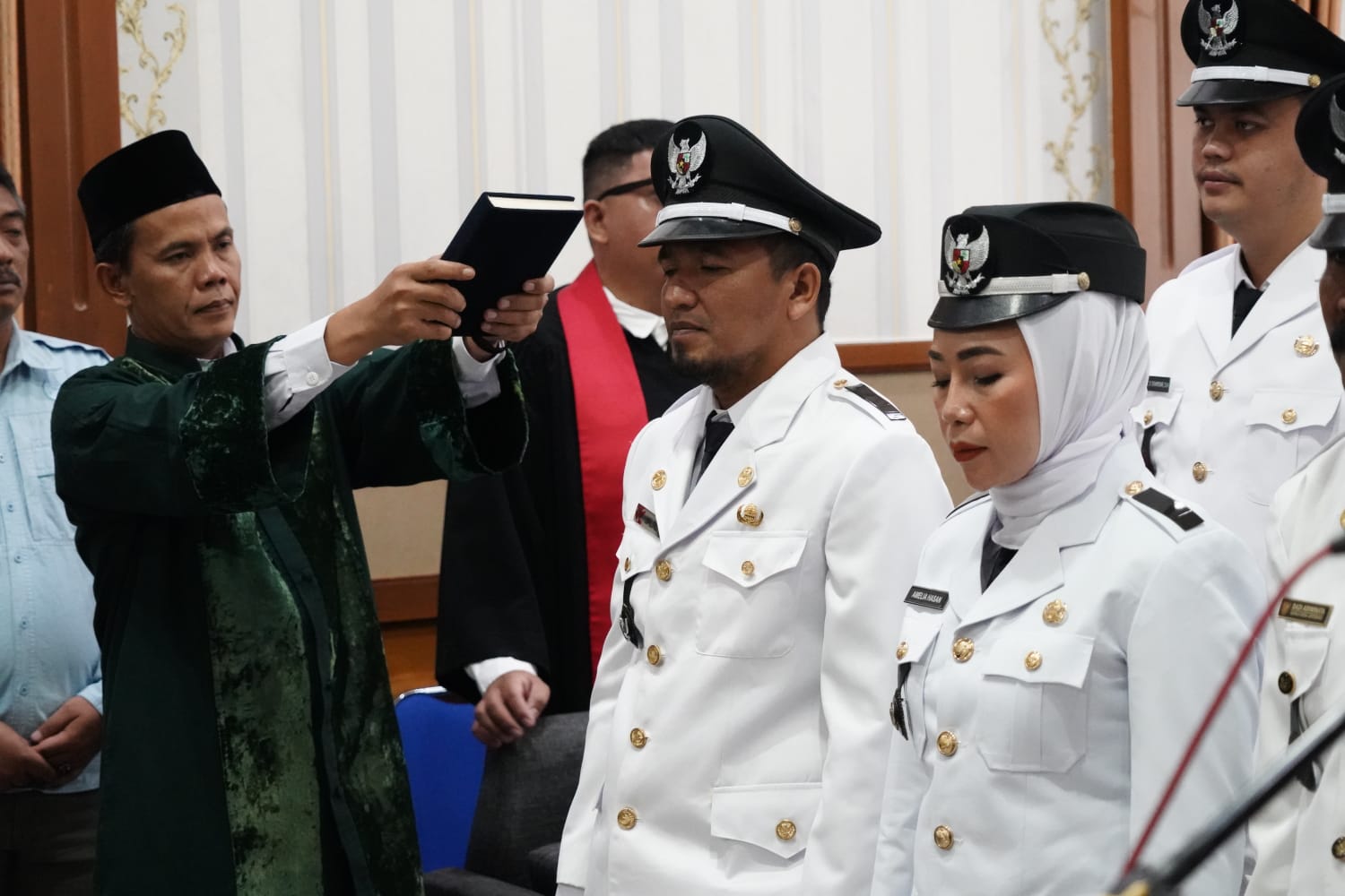 GARUT – Bupati Garut, Rudy Gunawan melantik 10 Kepala Desa (Kades) Pergantian Antar Waktu (PAW) yang berlangsung di Ruang Pamengkang, Kecamatan Garut Kota, Kabupaten Garut, Selasa (19/12/2023).