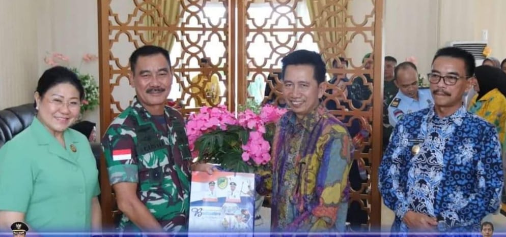 Barito Utara, Kalteng – Bupati Barito Utara, H. Nadalsyah, Wakil Bupati, Sugianto Panala Putra, Ketua DPRD, Ir. Hj. Merry Rukaini, M.IP., Sekda, Drs. Muhlis, unsur FKPD, dan Kepala Perangkat Daerah menerima kunjungan kerja (kunker) Pangdam XII/Tanjung Pura, Mayjen. TNI Sulaiman Agusto, S.IP., MM., beserta rombongan di Rumah Jabatan Bupati, Kamis (8/12/2022).