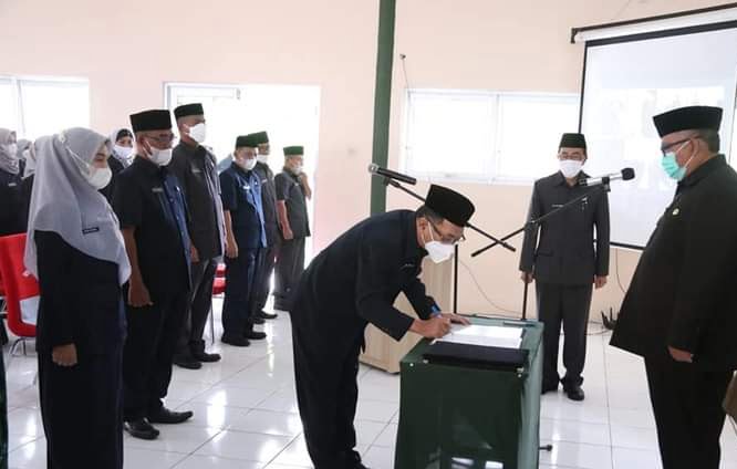 Sukabumi – Sebanyak 190 fungsional guru diberi tugas sebagai Kepala Sekolah di lingkungan Pemerintah Kabupaten Sukabumi, pemberian tugas dilakukan melalui pelantikan dan pengambilan sumpah oleh Bupati Sukabumi H. Marwan Hamami di Aula BKPSDM Kabupaten Sukabumi, Rabu, ( 23/03/2022 ).