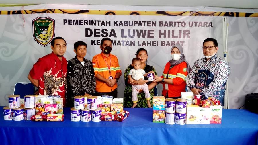 Bantuan makanan tambahan untuk mencegah stunting ini diserahkan oleh Head HRGA David Dere didampingi Land Acquisition ibu Anita Ali dan disaksikan Camat Lahei Barat Adi Suwarman serta Kepala Desa (Kades) Luwe Hilir Ariyadi.