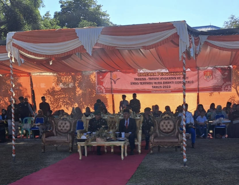 Hari ini saya akan mengukuhkan kalian menjadi Taruna/Taruni angkatan Ke- 22 SMA Terpadu Wira Bhakti Gorontalo tahun pelajaran 2023-2024. Sebelum saya kukuhkan, saya perlu mengajukan beberapa pertanyaan yang harus kalian jawab dengan tegas.