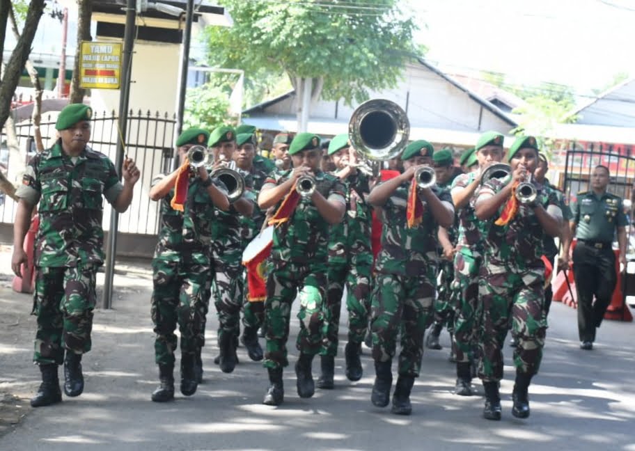 Danrem 133/NW bersama para Kasi Kasrem 133/NW beserta Dandim 1313/Pohuwato, Ka Ajenrem 133/NW, dengan diiringi musik selamat ulang tahun dari penampilan Marcing Band Korem 133/NW dan membawa tumpeng hari ulang tahun Bhayangkara ke-77 melaksanakan jalan kaki dari jalan raya depan Mapolda Gorontalo menuju kedalam Mapolda Gorontalo.