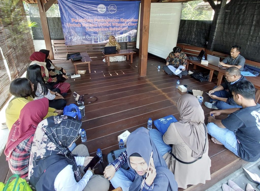 SUKABUMI – AQUA Mekarsari menggandeng Dinas Koperasi dan UMKM Kabupaten Sukabumi beserta Karya Masyarakat Mandiri Dompet Dhuafa mengadakan pelatihan peningkatan kapasitas kewirausahaan bagi para pelaku UMKM di wilayah Kecamatan Cicurug, Kabupaten Sukabumi.