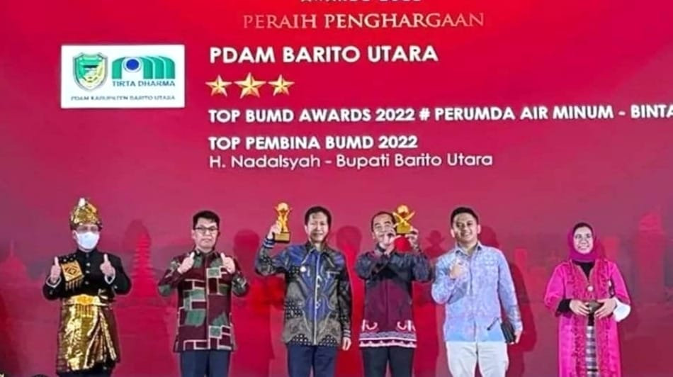 Barito Utara – Kabupaten Barito Utara patut berbangga atas diraihnya penghargaan oleh Bupati Barito Utara, H. Nadalsyah sebagai TOP Pembina BUMD 2022 dan PDAM Barito Utara yang meraih predikat bintang 3 TOP BUMD Award 2022.
