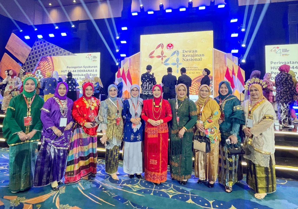 SOLO – Ketua Dekranasda Kabupaten Banggai Hj Syamsuarni Amirudin, menghadiri peringatan syukuran Hari Ulang Tahun (HUT) Ke-44 Dekranas dan Pembukaan Expo Pameran Dekranas 2024 di Auditorium Hotel Alila Solo, Rabu (15/5/2024).