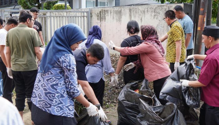 Dalam pelaksanaannya, para pegawai secara bersama-sama membersihkan area lingkungan kantor dari sampah dan plastik guna menciptakan lingkungan yang lebih tertata dan sehat.