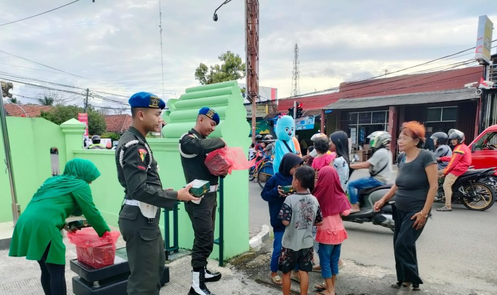 Lebak, Banten – Jajaran Subdenpom III/4-1 Rangkasbitung, Kabupaten Lebak turun ke jalan untuk membagikan takjil ramadhan kepada warga yang melintas, tepatnya di Jalan Pahlawan Lampu Merah Kongsen, Kamis (30/03/2023) sore.