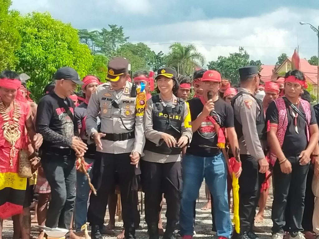 Lamandau – Kapolres Lamandau, AKBP Arif Budi Purnomo S.I.K., M.H., memimpin langsung kegiatan pengamanan aksi damai dari masyarakat Adat Laman Kinipan yang bergabung dengan Tariu Borneo Bangkule Rajakng (TBBR) terkait kasus Tindak Pidana Korupsi (Tipikor) Kades Kinipan William Hengki.