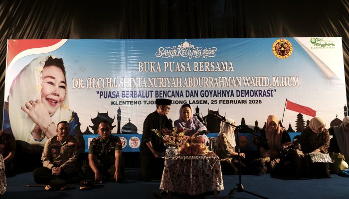 REMBANG – Kapolres Rembang AKBP M. Faisal Pratama, S.I.K., S.H., M.H. menghadiri kunjungan dan silaturahmi istri Presiden ke-4 RI, Shinta Nuriyah Wahid, pada perayaan Tahun Baru Imlek 2577 Kongzili Tahun 2026 di Klenteng Cun An Kiong, Kecamatan Lasem, Kabupaten Rembang, Rabu (25/2/2026) pukul 17.00–19.00 WIB. Kegiatan tersebut dihadiri unsur Forkopimda, tokoh agama, tokoh masyarakat, pengurus klenteng, serta tamu undangan sebagai bentuk penghormatan dan kebersamaan dalam momentum Imlek.