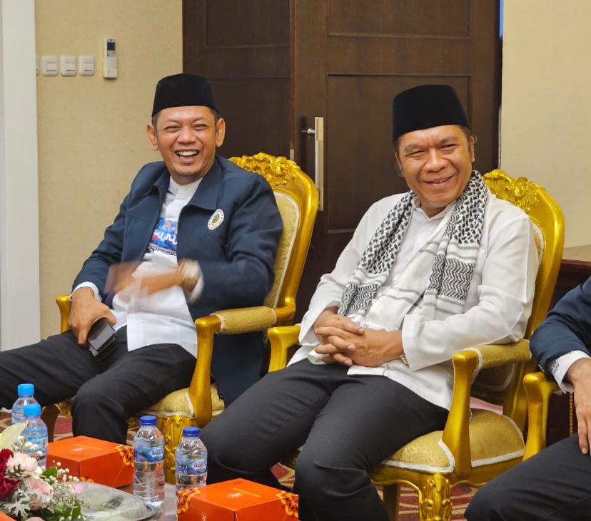 Ketum PB Al-Khairiyah KH Ali Mujahidin (kiri) berbincang dengan Pj. Gubernur Banten Al-Muktabar (kanan) sebelum pembukaan Rakernas PB Al-Khairiyah di Gedung Nusantara mo IV Kompleks Parlemen, Senayan Jakarta akhir pekan lalu (Foto: Humas Al-Khairiyah).