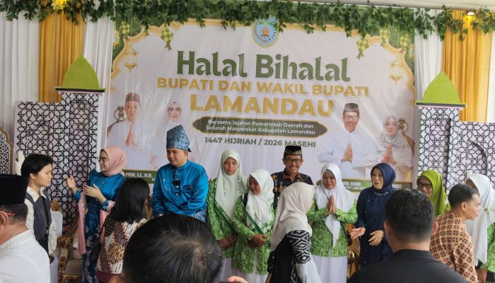 Lamandau Kalteng – Dalam rangka mempererat silaturahmi dan kekeluargaan, Bupati Lamandau Rizky Aditya dan Wakilnya Abdul Hamid menggelar acara Halalbihalal 1447 Hijiriah, Tahun 2026 Masehi, yang dihadiri unsur Forum Pimpinan Kepala Daerah (Forkopimda), tokoh masyarakat, tokoh agama dan masyarakat Kabupaten Lamandau.