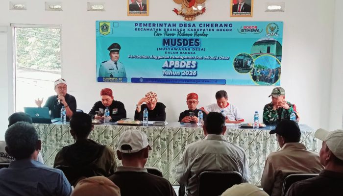 BOGOR – Pemerintah Desa Ciherang menggelar Musyawarah Desa (Musdes) pada hari ini,Kamis 2/4/2026.Dengan agenda utama perubahan APBDes Tahun Anggaran 2026, penetapan Keluarga Penerima Manfaat (KPM) Bantuan Langsung Tunai (BLT), serta program ketahanan pangan.
