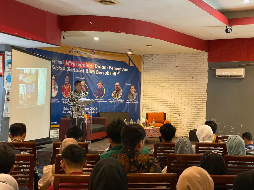 Hadir dalam diskusi ini Analis Kegiatan Usaha Hilir Migas BPH Migas Gumilar Achmad, Manajemen PT Pertamina Patra Niaga Sugeng (Vice President Retail Fuel Sales), Direktur Lingkar Pemuda Nusantara (LPN) Mufti Azmi Miladi, Asisten Ombudsman RI Saputra Malik, Plt Kaper Ombudsman Propinsi Banten Awidya Mahadewi, Pengamat Sosial Politik Fathorrahman Fadli, dan Akademisi UIN Jakarta Agus S Djamil. (Putra/Tim).