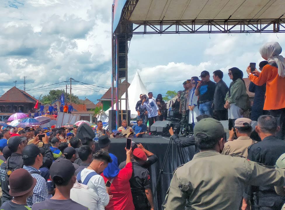 “Teruskan, Teruskan Empat Lawang MADANI 2 Periode” terus berkumandang dilapangan Merdeka Kecamatan Muara Pinang sepanjang berlangsungnya acara Pesta rakyat Symphony Of MADANI. (Alian Kardi)