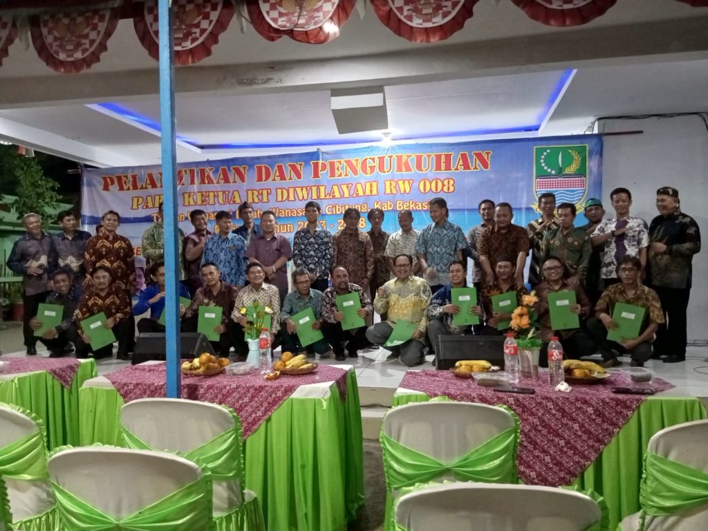 KABUPATEN BEKASI – Pelantikan dan Pengukuhan para ketua Rukun Tetangga (RT) wilayah Rukun Warga (RW) 008 Kelurahan Wanasari Kecamatan Cibitung Kabupaten Bekasi untuk periode 2023 -2028 berlangsung lancar.