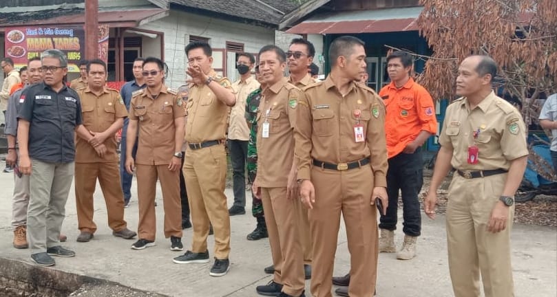 Barito Utara, Kalteng – Bupati Barito Utara (Barut) H Nadalsyah didampingi Wakil Bupati Sugianto Panala Putra, Sekda Muhlis meninjau lokasi terjadinya kebakaran di Kecamatan Lahei yang menghanguskan 13 rumah dan mengakibatkan 16 KK kehilangan tempat tinggal.