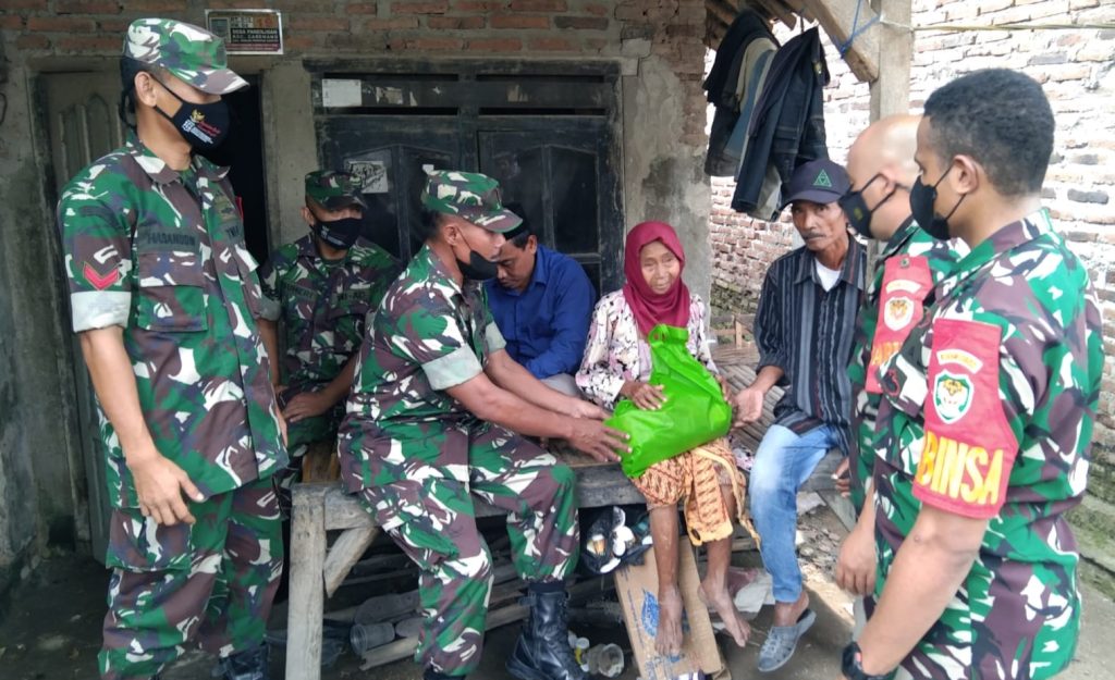 Serang – Personel Koramil 0602-17/Carenang Kodim 0602/Serang melaksanakan kegiatan bakti sosial pemberian bantuan sembako kepada warga kurang mampu, bertempat di Kampung Panenjoan, Desa Panenjoan, Kecamatan Carenang, Kabupaten Serang, Banten, Jum’at (25/3/2022).