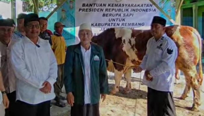 REMBANG – Menjelang perayaan Hari Raya Idul Adha 1446 H, masyarakat Desa Sumberagung, Kecamatan Pancur, Kabupaten Rembang menerima bantuan hewan kurban dari Presiden Republik Indonesia, H. Prabowo Subianto. Bantuan berupa satu ekor sapi jenis Limousin diserahkan secara simbolis pada Sabtu (7/6/2025) di halaman Masjid Baitul Muttaqin.