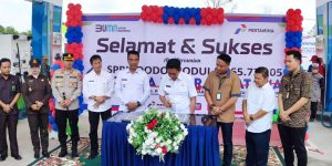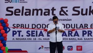 Barito Utara, Kalteng – Bupati Barito Utara H Nadalsyah meresmikan SPBU Dodo Modular PT Seia