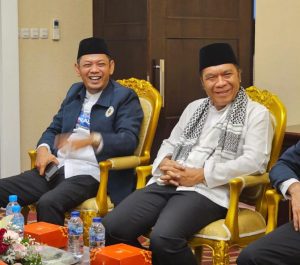 Ketum PB Al-Khairiyah KH Ali Mujahidin (kiri) berbincang dengan Pj. Gubernur Banten Al-Muktabar (kanan) sebelum