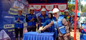 Sugianto Panala Putra, Ketua DPRD Hj Mery Rukaini, Kajari, dan Sekda melakukan pemancangan tiang lanjutan