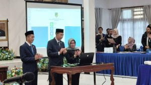 Bupati Barito Utara H Nadalsyah didampingi Sekda Muhlis dan Kepala KKPSDM Hj Sri Hartati saat