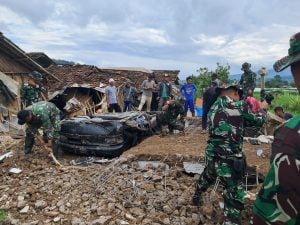 CIANJUR – Pasukan Tentara Nasional Indonesia (TNI) dari Batalyon Infanteri 315/Grd Kodam III/Slw melaksanakan pembersihan