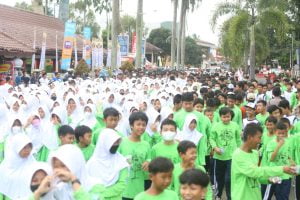 Pandeglang, Banten – Ribuan orang mengikuti jalan sehat dalam rangka peringatan Hari Koperasi ke-75 tingkat