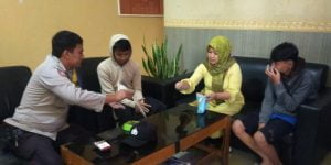 Siti Julaeha bersama anaknya saat sedang melapor ke pihak kepolisian. (Foto istimewa). Lebak, Banten –