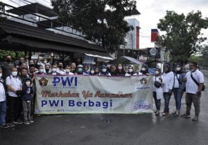 BANDUNG – Serikat Media Siber Indonesia (SMSI) Jawa Barat membagikan ratusan paket Takjil berupa makanan siap