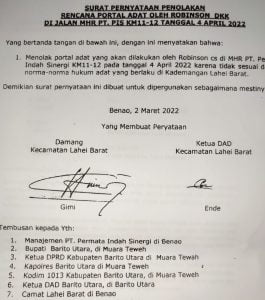 Barito Utara – Klaim lahan oleh Robinson Cs di Jalan Hauling PT. Permata Indah Sinergi