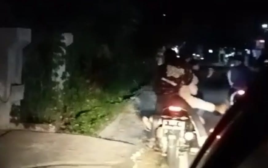 Para remaja yang diduga akan melakukan aksi balap liar berhamburan saat didatangi RPM Banten. Minggu 20 Agustus 2023 dini hari. (Foto: Dokumen RPM Banten).