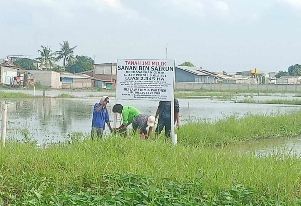 KAB. BEKASI – Saling mengklaim antara ahli waris Sanan bin Sairun alat bukti Girik melawan Sertifikat Hak Milik (SHM) atas nama L. Mulyadi. Lokasi tanah berada di Kp. Tanah Baru Desa Pantai Makmur Kecamatan Tarumajaya Kabupaten Bekasi.
