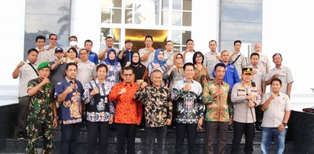 Barito Utara – Bupati Barito Utara, H. Nadalsyah didampingi Ketua TP PKK, Hj. Sri Hidayati Nadalsyah, Wakil Bupati, Sugianto Panala Putra beserta Ketua GOW, Ketua DPRD, Sekda beserta Ketua Dharma Wanita Persatuan, Unsur FKPD, Staf Ahli Bupati, Asisten Sekda, Kepala Perangkat Daerah, Ketua dan anggota PWI Barito Utara menyambut kedatangan Ketua Umum (Ketum) Persatuan Wartawan Indonesia (PWI) Pusat, Atal S. Depari beserta Ibu serta Ketua PWI Provinsi Kalteng dan rombongan di Rumah Jabatan Bupati, Jum’at (24/6/2022).