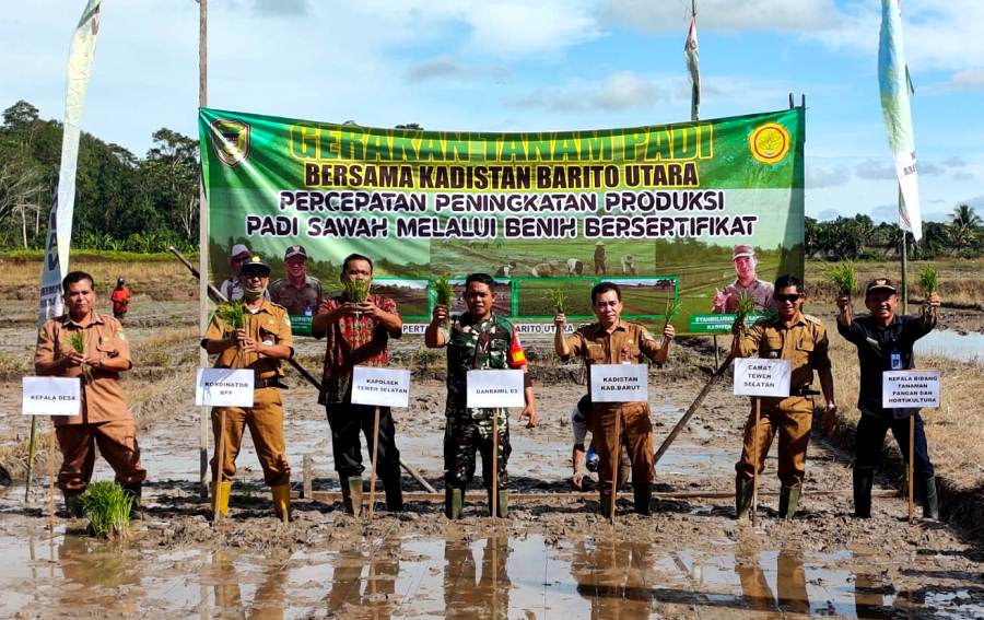Kegiatan tanam perdana padi sawah varietas inpari Nutri Zinc dilaksanakan oleh Dinas Pertanian Kabupaten Barito Utara, Bidang Ketahanan Pangan dan Holtikultura, Balai Penyuluh Pertanian (BPP) Kecamatan Teweh Selatan bertempat di Desa Trehean Kecamatan Teweh Selatan, Kabupaten Barito Utara, Senin (20/6/2022).