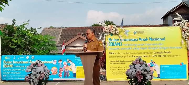 Sukabumi – Wakil Bupati (Wabup) Sukabumi, H. Iyos Somantri bersama Pemerintah Kabupaten Sukabumi melalui Dinas Kesehatan membuka acara pencanangan Bulan Imunisasi Anak Nasional (BIAN), yang bertempat di Posyandu Mawar 2 Perum Mekarsari, Desa Mekarsari Kecamatan Cicurug, Kabupaten Sukabumi, bertujuan untuk memproteksi anak – anak dari penyakit yang dapat dicegah melalui imunisasi, Selasa (2/8/2022).