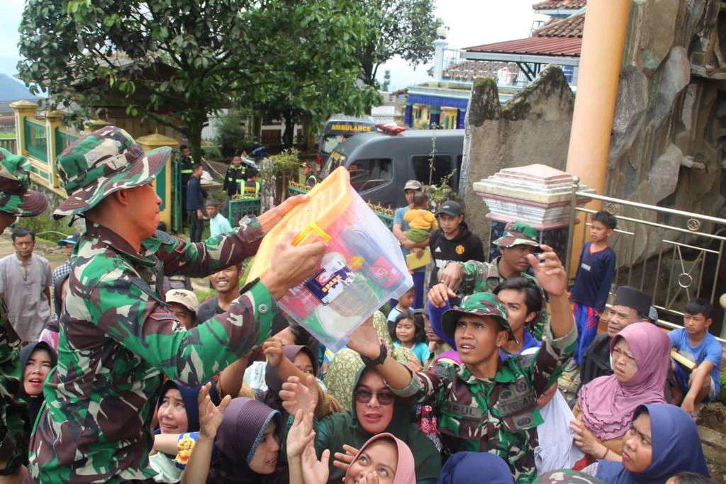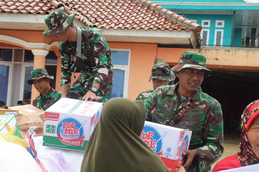 CIANJUR – Prajurit Batalyon Infanteri 315/Garuda turut berpartisipasi dalam pengawalan dan penyaluran bantuan sosial Kemensos peduli bencana gempa yang terjadi di Cianjur, Jawa Barat pada Sabtu (26/11/2022).